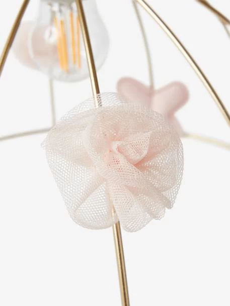 Le métal filaire modernise cet abat-jour poétique et aérien ! Une représentation de cage à oiseaux où sont appliqués quelques papillons et oiseaux colorés !