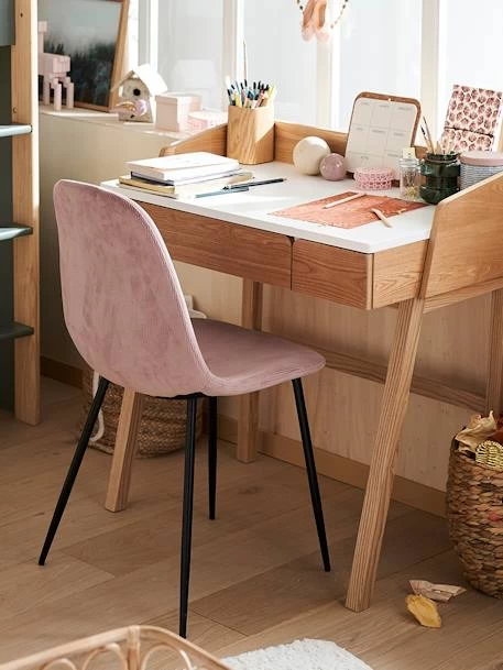 Chaise enfant en velours côtelé polyester, pieds en métal.