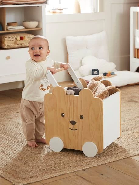 Coffre à roulettes Ourson en pin massif.