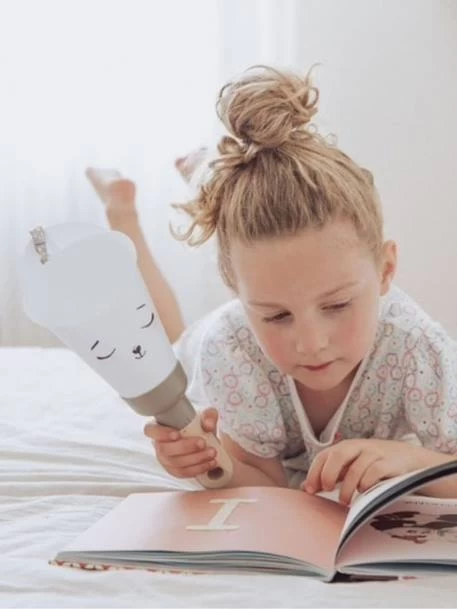 - Facile à utiliser, elle s’éteint seule au bout d’une heure et ne fait que 250g ! Un vrai poids plume : votre enfant l’emmène partout et la recharge dès qu’elle clignote !