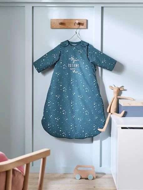 Bébé s’endort parmi les étoiles, recouvert par cette superbe gigoteuse décorée de constellations ! Bien chaude, elle promet de douces nuits en toute sécurité.