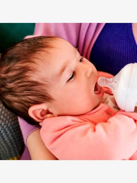 Doté de la nouvelle tétine en silicone souple, très douce et confortable grâce à ses alvéoles de confort uniques, conçue pour que bébé tète naturellement, comme au sein.