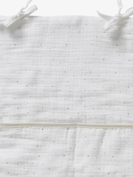 Pratique pour ranger les affaires de bébé, cet organisateur se fixe sur la table à langer ou au lit de bébé. Il dispose de 6 poches et décore avec tendresse l’espace à langer avec sa gaze de coton imprimée de petites étoiles dorées.