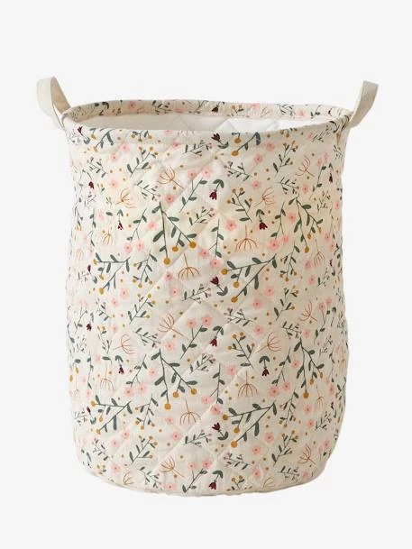 Ce petit panier de rangement matelassé au doux motif floral assorti au linge de lit du même thème vendu sur notre site trouvera facilement sa place dans la chambre de votre enfant pour accueillir peluches et jouets !
