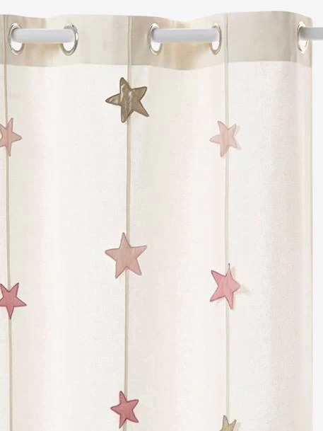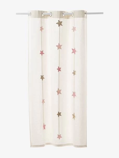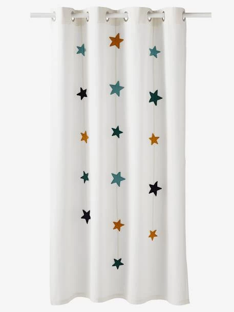 Ce rideau en toile bâchette de qualité habille joliment la fenêtre et offre au regard de belles guirlandes d’étoiles.
