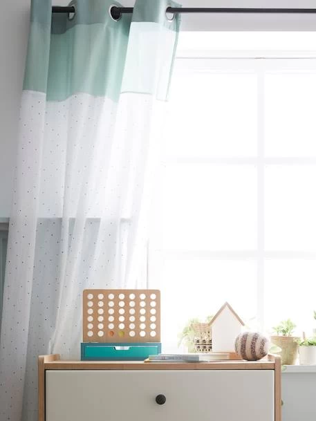 Un rideau voilage délicat, imprimé de petits pois, qui apportera de la tendresse à la décoration de chambre.
