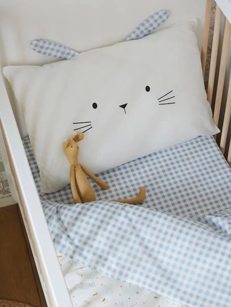 Taie d’oreiller à croquer promet de douces nuits pleines de jolis rêves à votre bébé ! Comment ne pas craquer pour cette bouille de lapin et ses adorables oreilles vichy ! Pour créer la parure complète, découvrez la housse de couette bébé et le drap-housse bébé Lovely Farm en vente sur notre site !